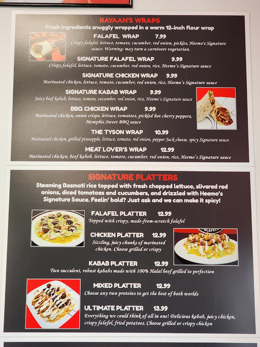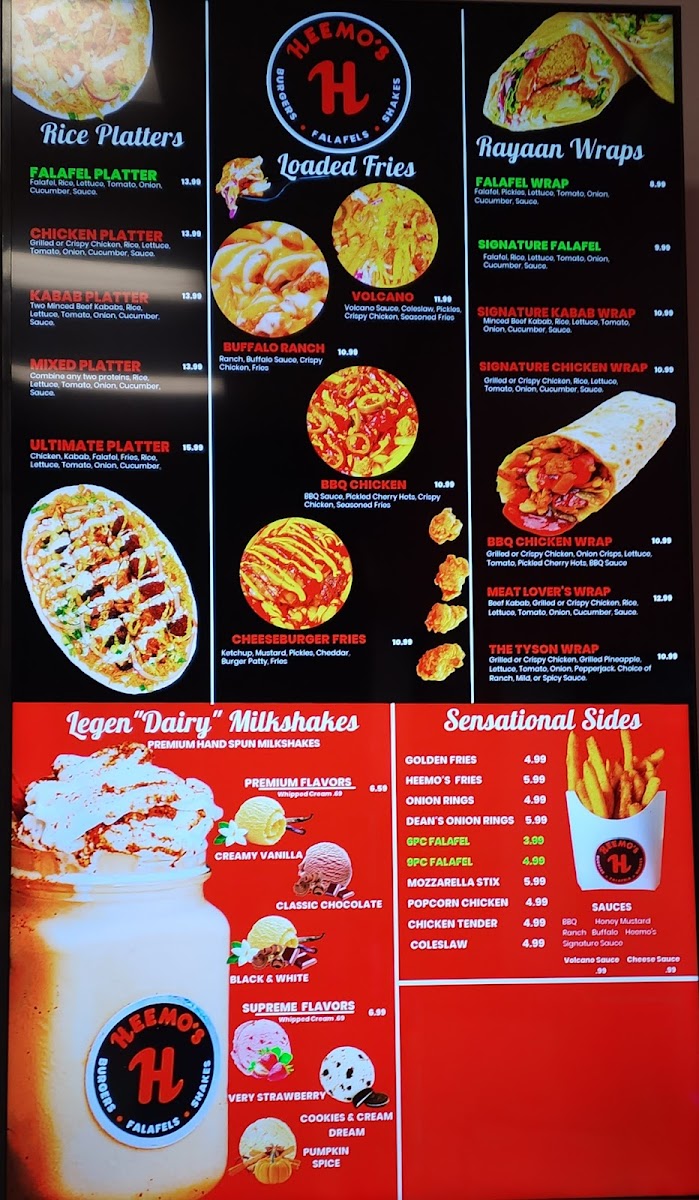 Many guests find Heemo’s ideal for lunch or a casual dinner, whether stopping by after work or gathering with friends and family for an easy-going meal. The menu’s mix of classic and creative options, from the flavorful Rodeo Burger to the spicy Volcano Chicken Sandwich, fits naturally with the warm, welcoming atmosphere of the restaurant. For those seeking something a bit different, the rice and kabab platters bring a satisfying, heartier option that pairs fresh vegetables and sauces with tender grilled or fried proteins.